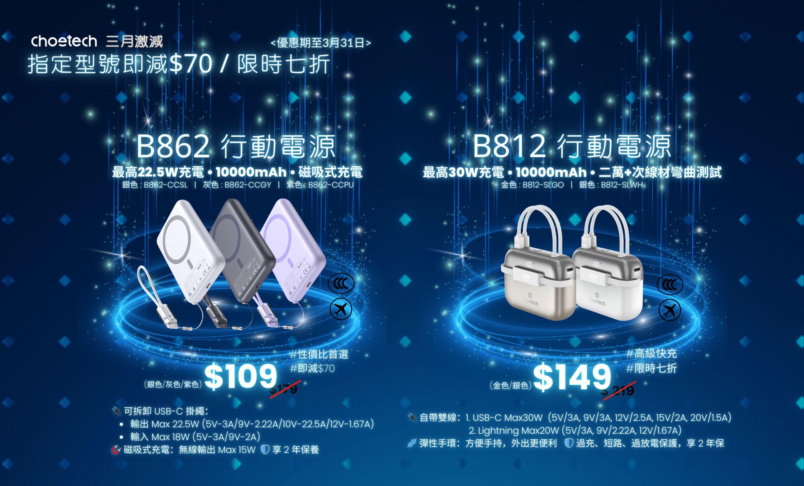 - 大多數銷售 Choetech 產品的店鋪都參與是次優惠活動,但仍建議在購買前先詢問店鋪有否提供上述優惠