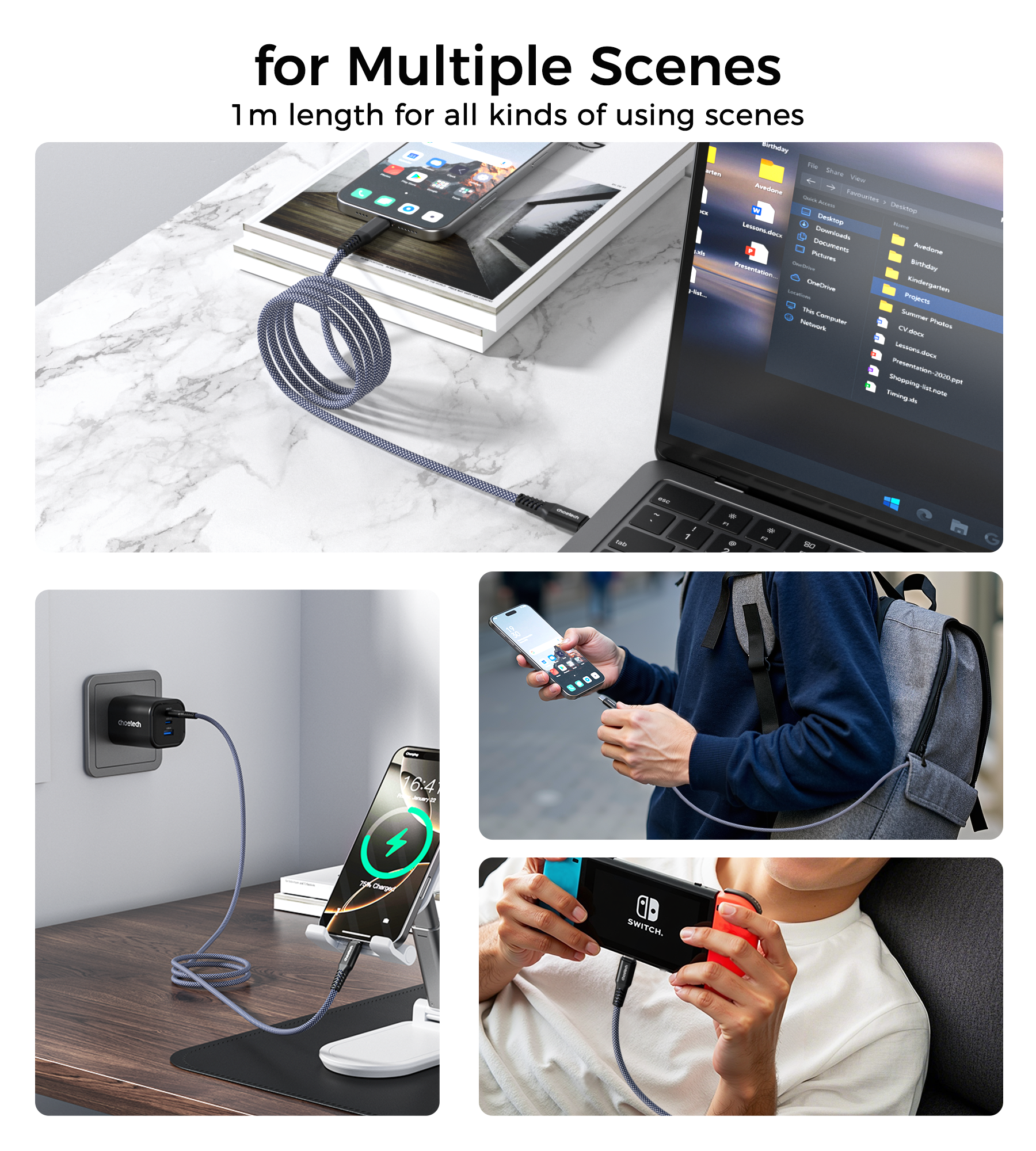 - 📏 1米線長:靈活使用,辦公、居家、外出皆適合