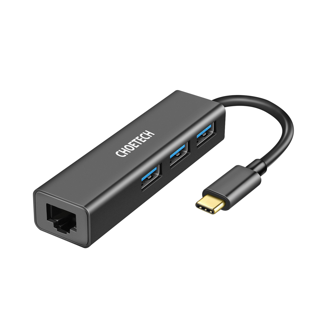 Choetech 4-In-1 USB-C to RJ45 + 3 x USB 3.0 Adapter Black