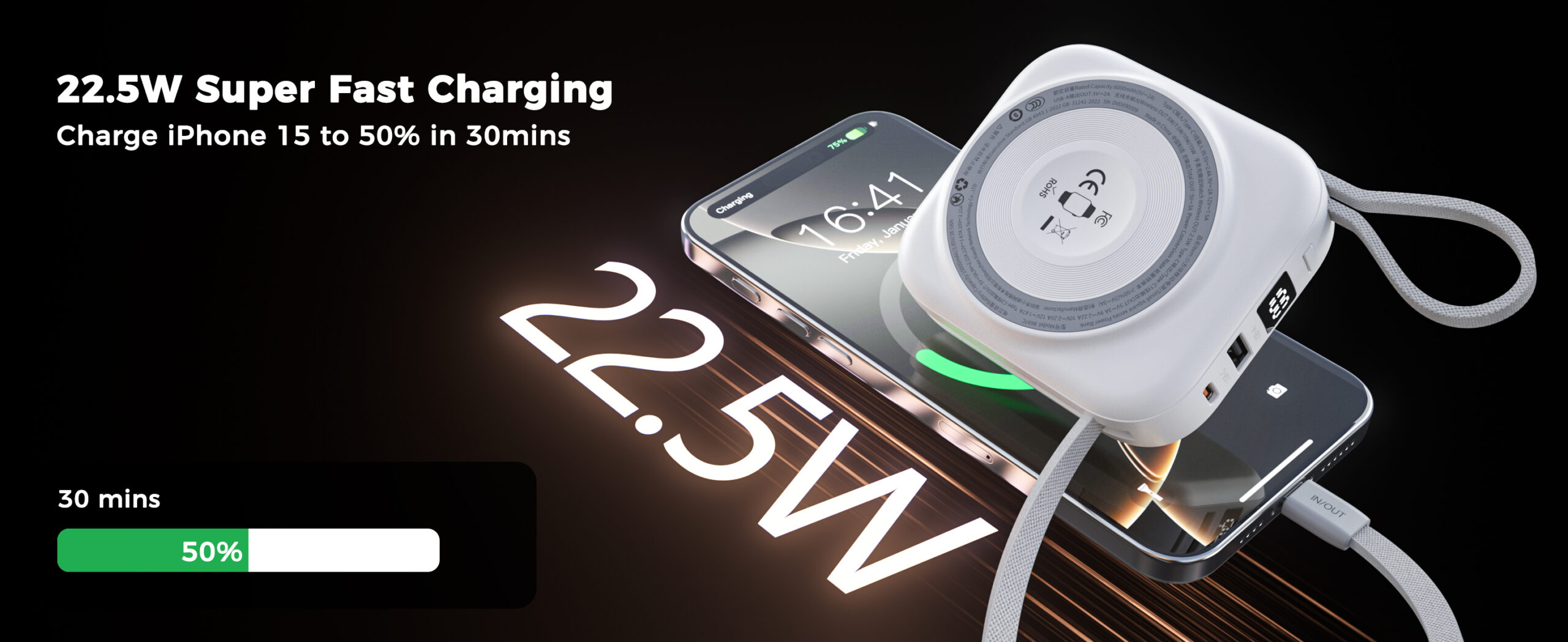 🧲 Magnetic Charging: Supports MagSafe, attaches securely to the back of your iPhone, and attaches firmly.