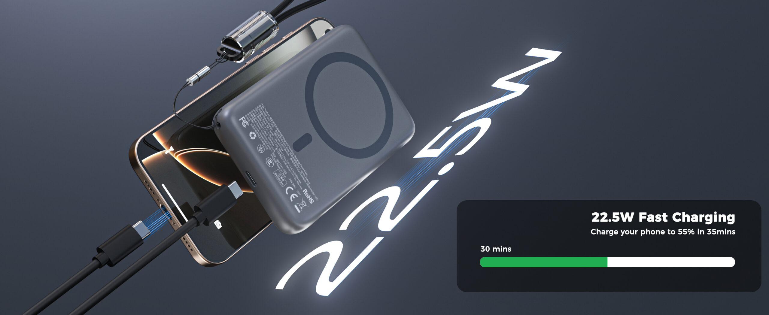 - ⚡ 快速充電:USB-C 輸出功率高達 22.5W,支援 PD 快充