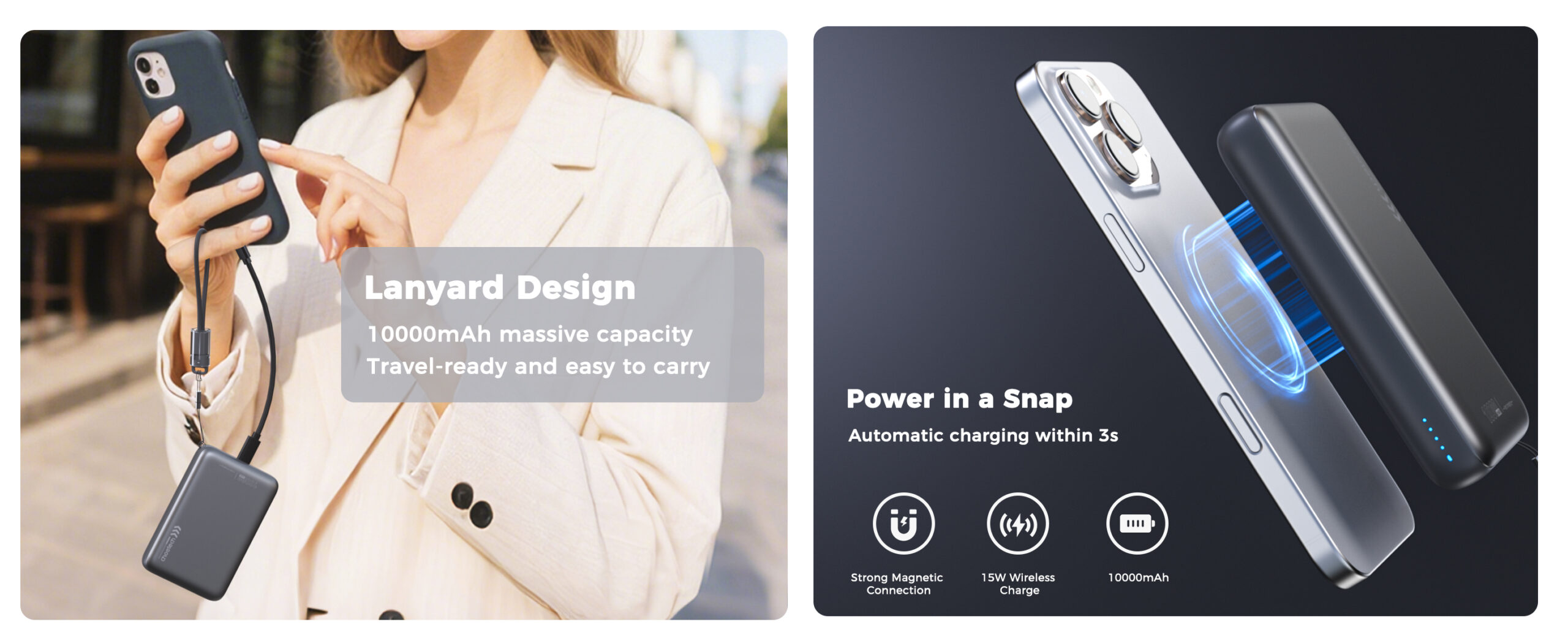 - 🧲 磁吸式充電:支援 MagSafe,可牢固吸附在 iPhone 背面