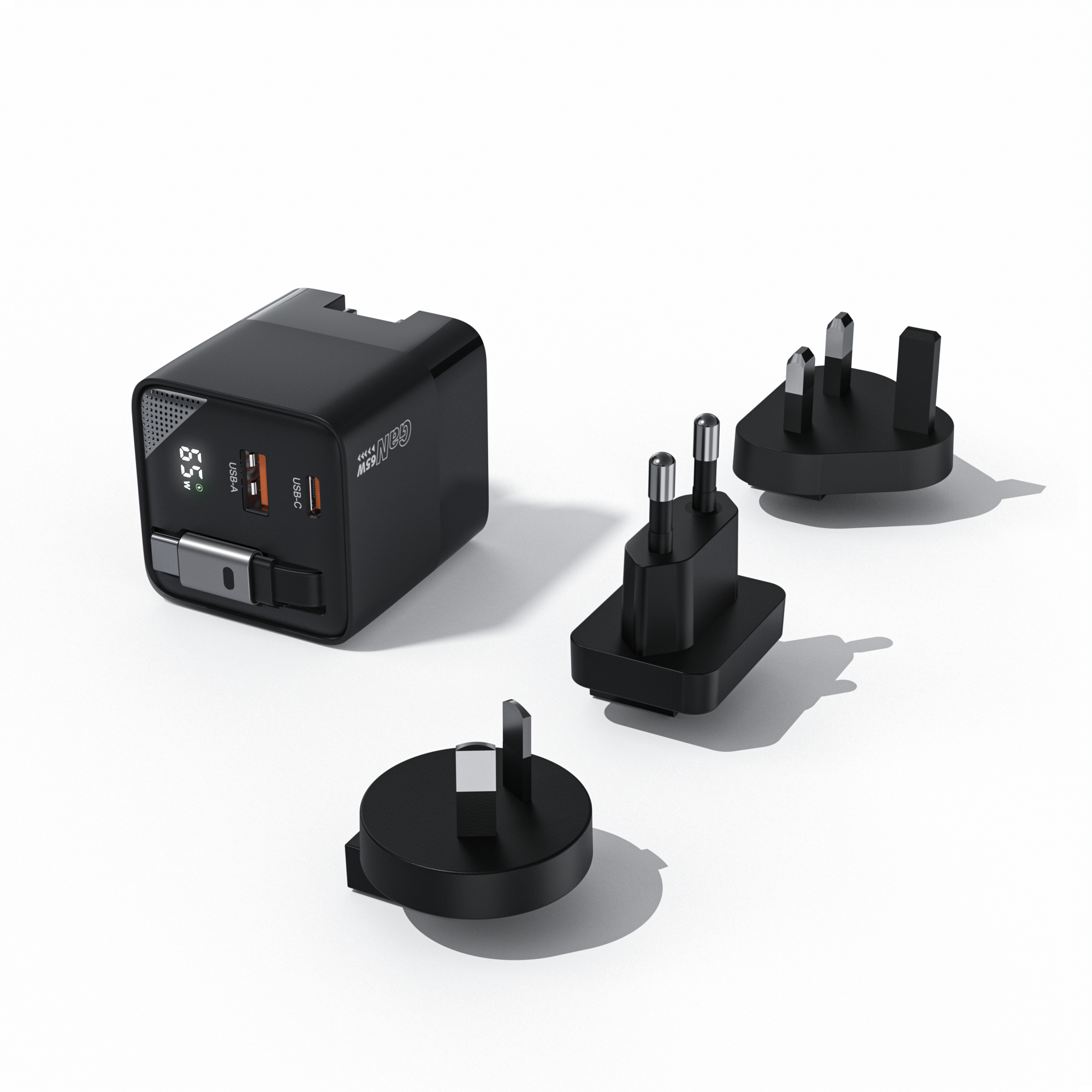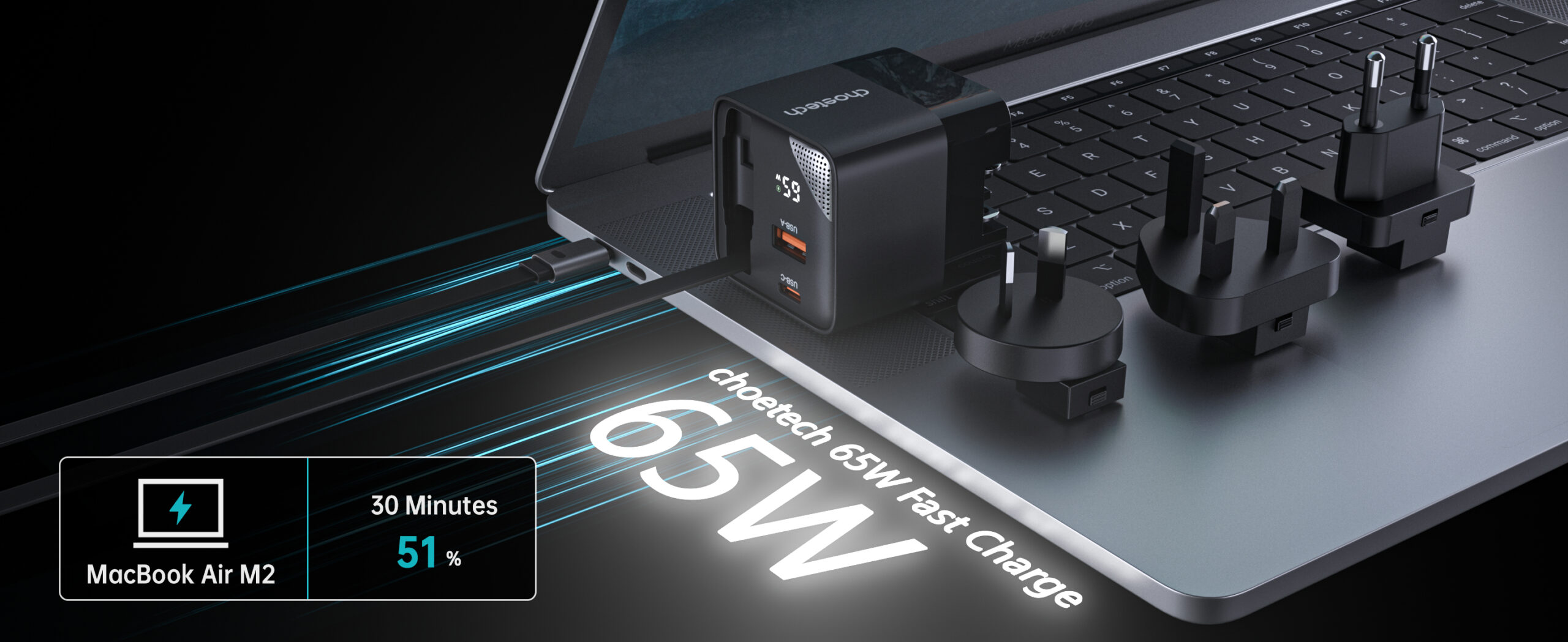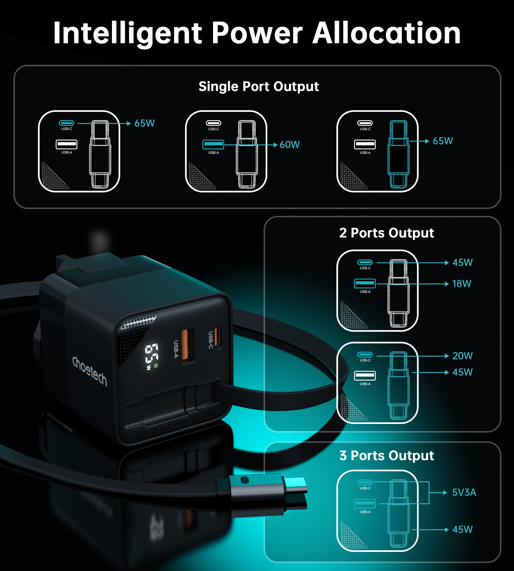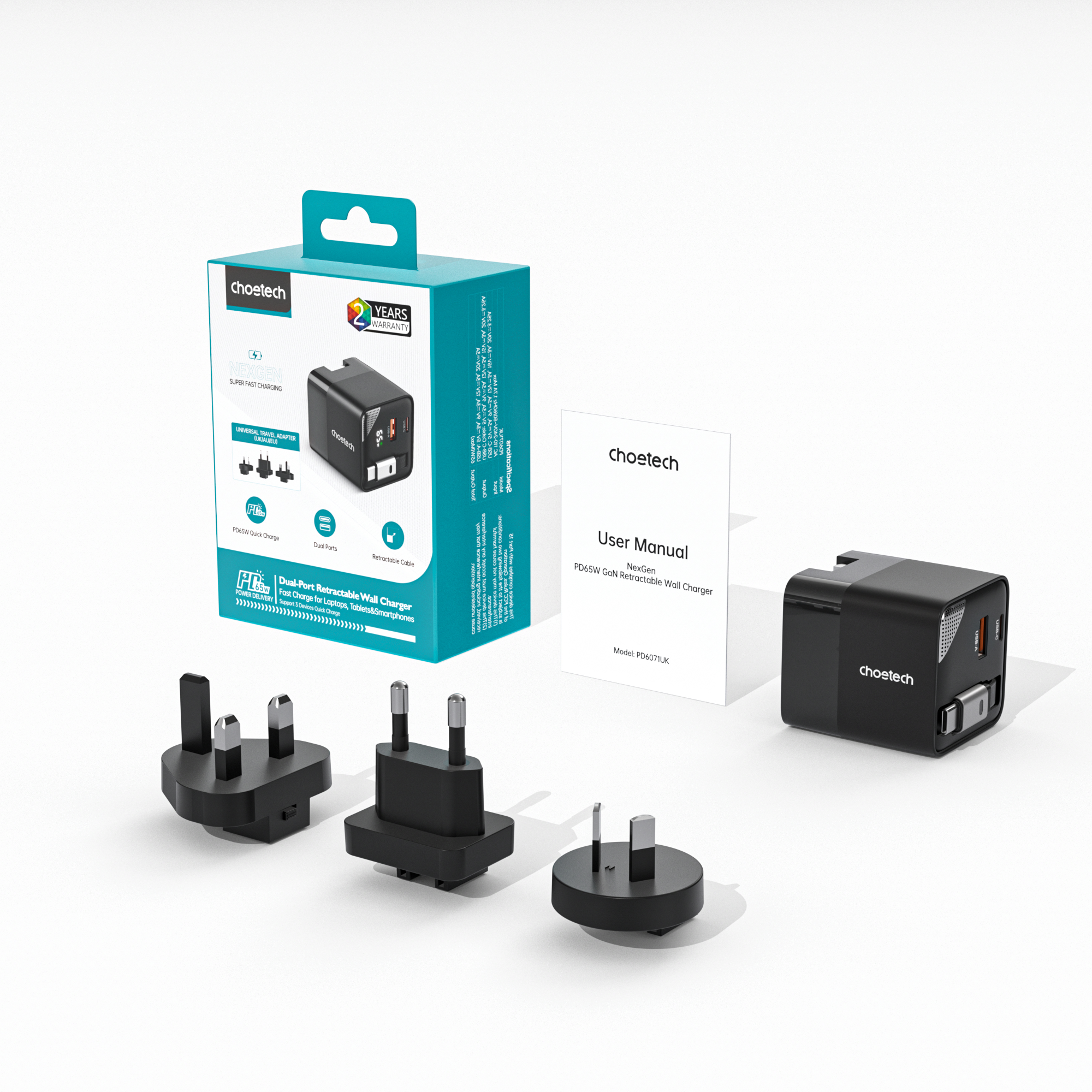 Choetech PD6071 PD65W Gan Universal Charger with Type-C Cable Black