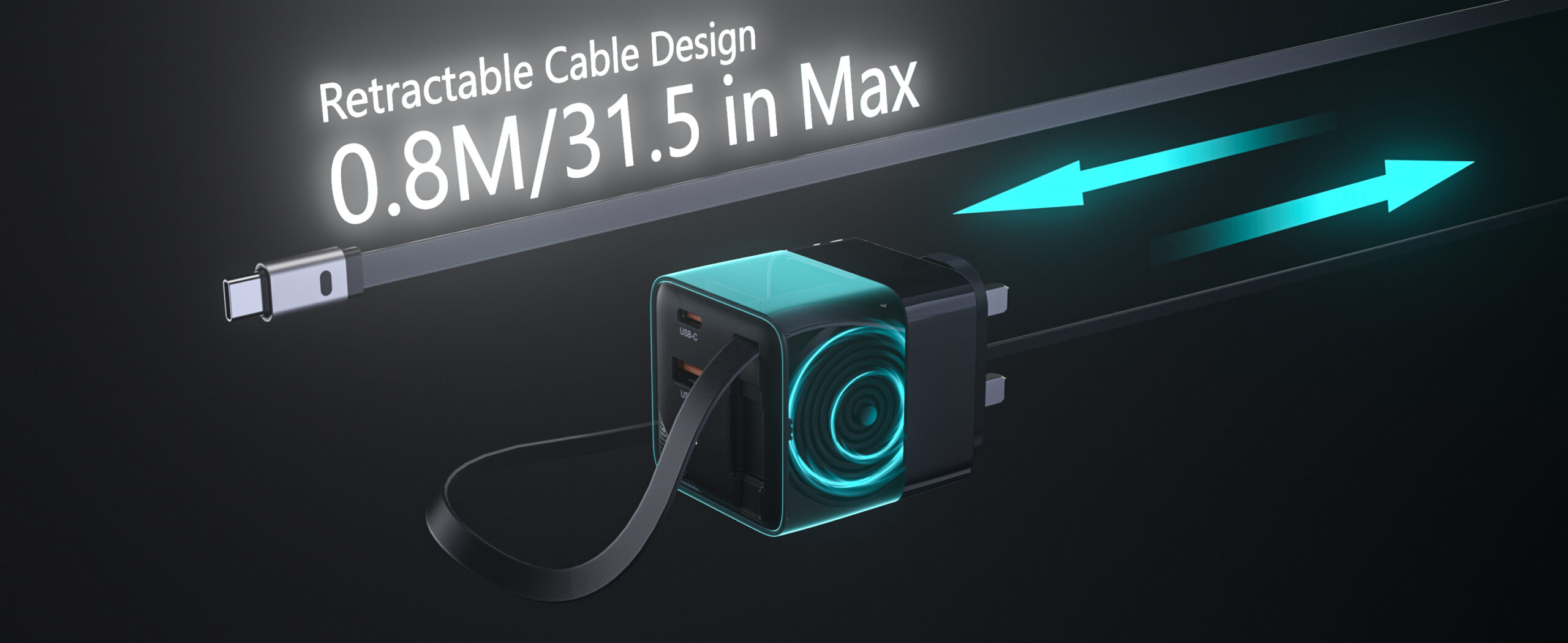 - ๐ Retractable USB-C Charging Cable: Extends up to 80cm, portable and easy to use