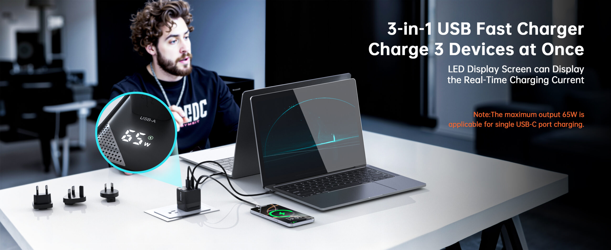 โก 65W PD Fast Charging: Supports fast charging for laptops, tablets, and phones