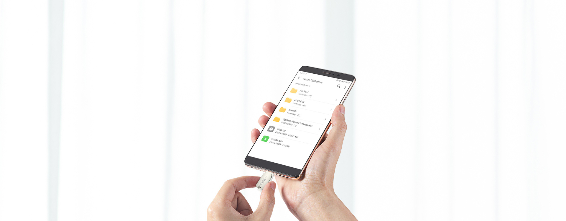 After connecting to the mobile phone, you can directly view and manage the files in the USB flash disk. No need to download additional APP.