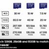128GB, 256GB, 512GB, 1TB