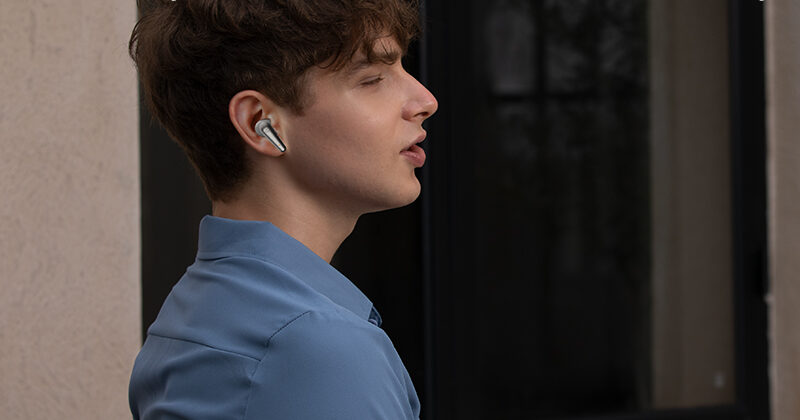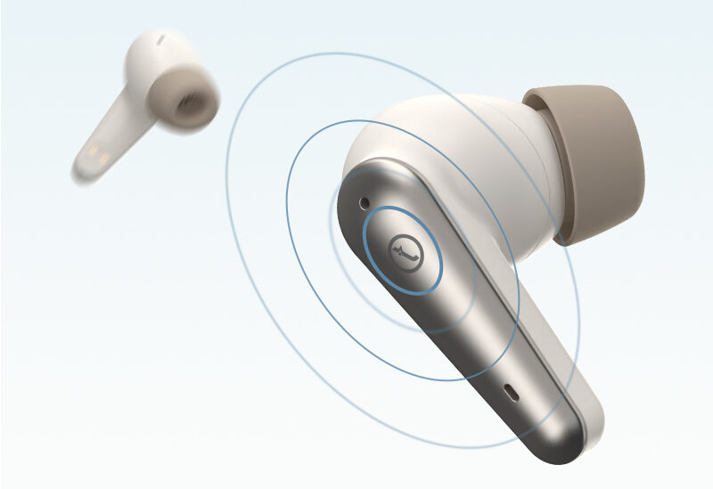 Open up a new quiet world of listening and speaking. 4 mics, dual noise cancelling earphone.