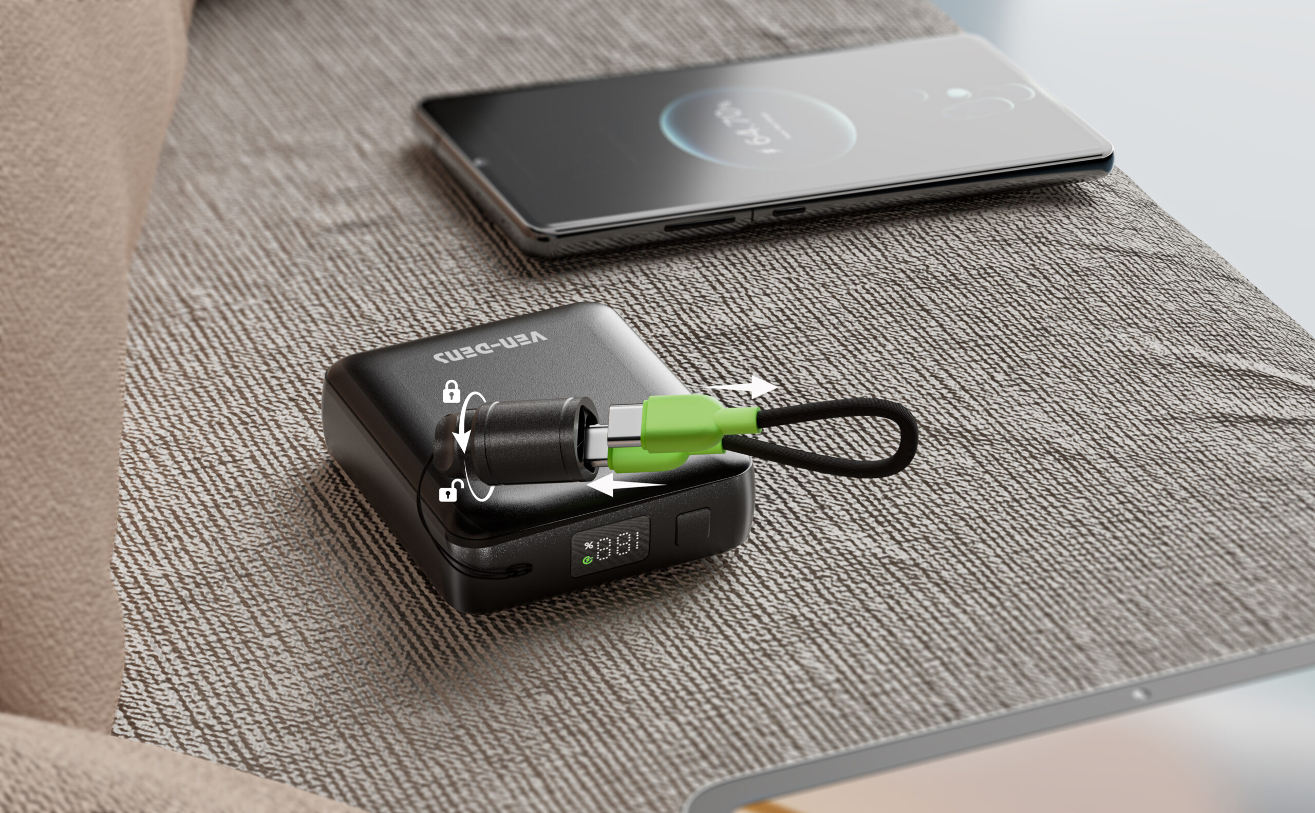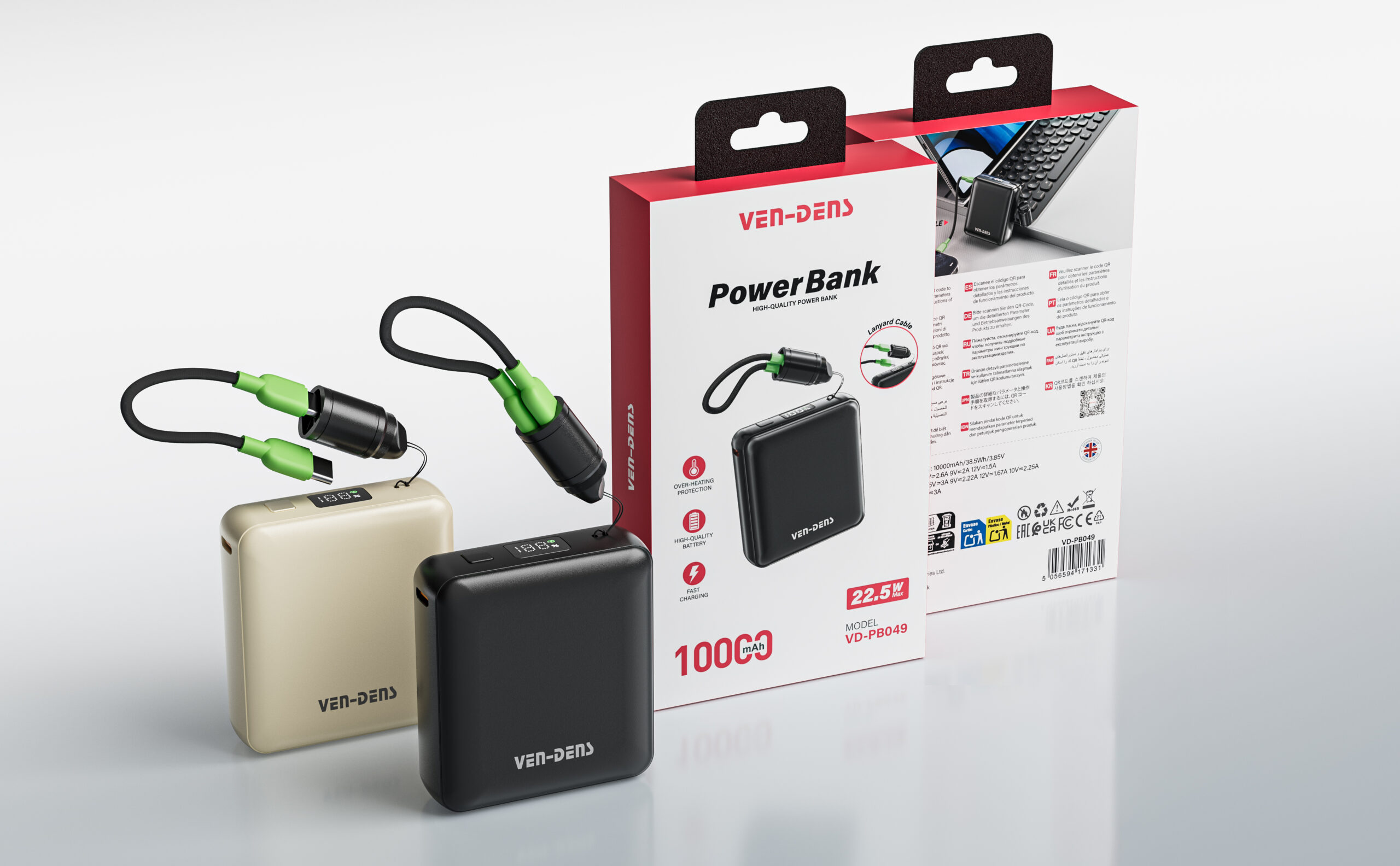 Ven-Dens PB049 10000mAh 行動電源連雙充電線 (22.5W)